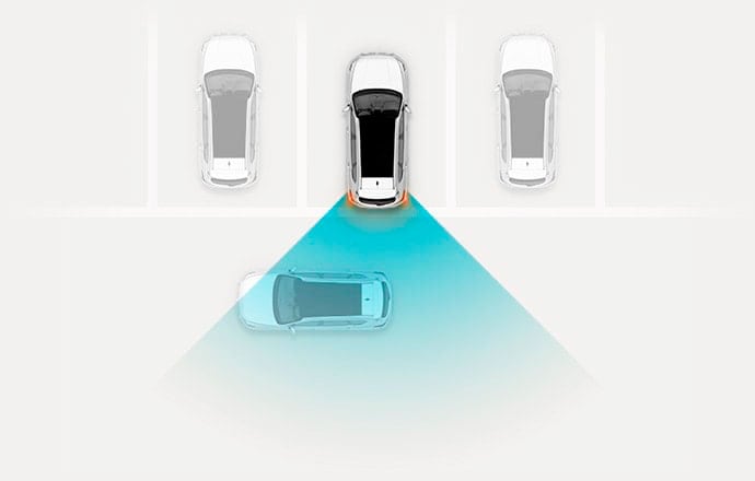 Система предупреждения столкновения сбоку при выезде с парковки задним ходом предупреждает водителя об опасности в случае обнаружения двигающегося наперерез автомобиля.