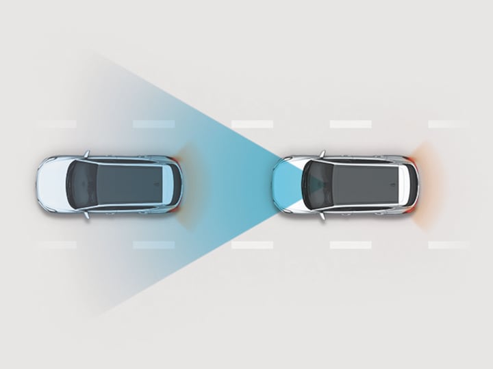 Система использует фронтальную камеру и радар для отслеживания движения перед автомобилем. При обнаружении препятствия система автоматически замедлит или остановит автомобиль.