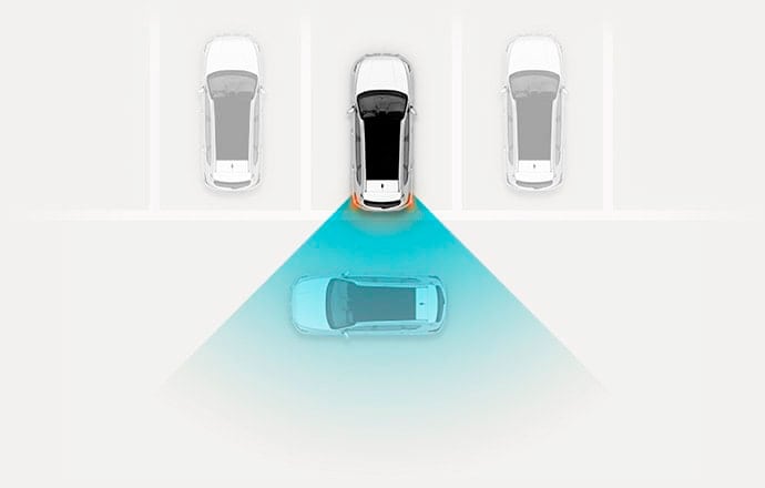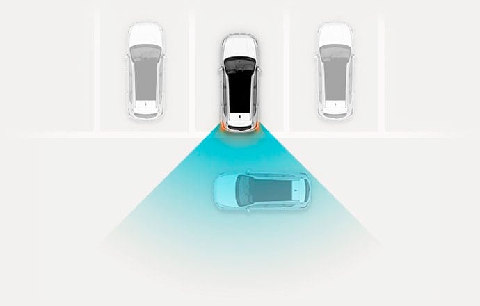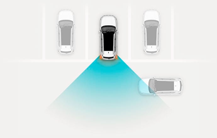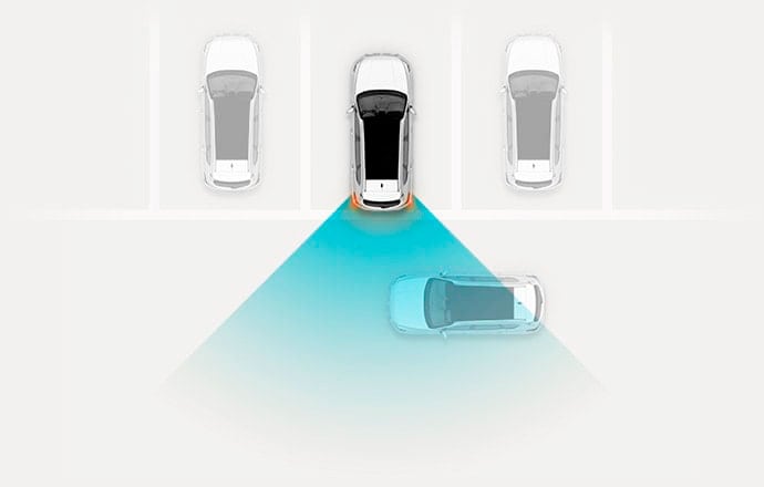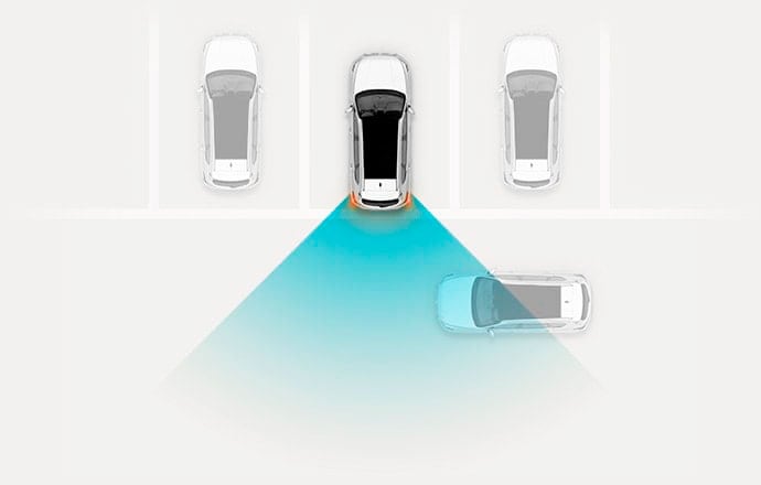 Система предупреждения столкновения сбоку при выезде с парковки задним ходом предупреждает водителя об опасности в случае обнаружения двигающегося наперерез автомобиля.